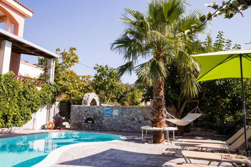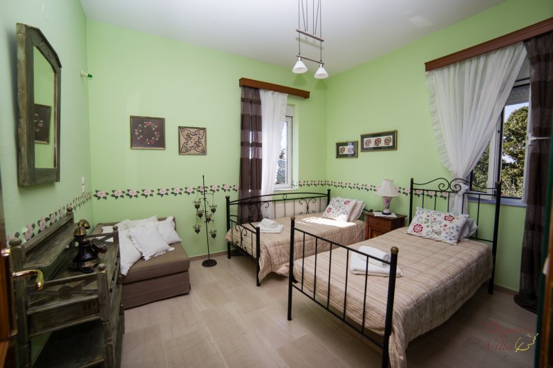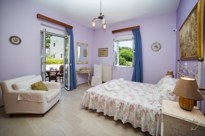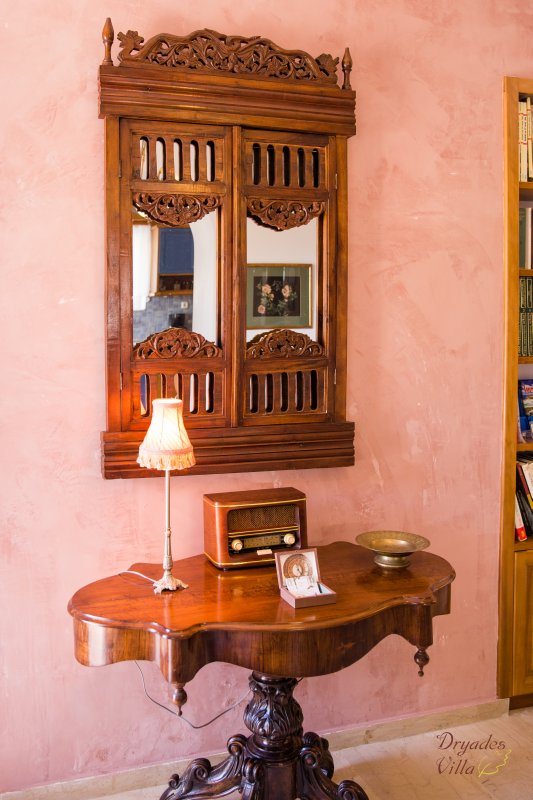 Η Dryadesvilla βρίσκεται στο χωριό Αρμένοι , το οποίο απέχει 8 χιλιόμετρα από την πόλη του Ρεθύμνου , Κρήτης. Eίναι ένα διώροφο πέτρινο παραδοσιακό σπίτι, το ισόγειο του οποίου κτίστηκε το έτος 1930 περίπου , επεκτάθηκε καθ’ ύψος το έτος 1993 και διαμορφώθηκε όλο εξ αρχής. Η συνολική επιφάνεια της βίλας είναι 205 τ.μ και του οικοπέδου της 1000 τ.μ..Η επίπλωση και η διακόσμηση της περιλαμβάνει παραδοσιακά Κρητικά έπιπλα αντίκες, υφαντά και κεντήματα. Στα δωμάτια της μπορούν να φιλοξενηθούν 8-10 άτομα. Έχει 4 υπνοδωμάτια, 1 μπάνιο, 1 wc, 1 κουζίνα και 3 σαλόνια σε ενιαίο χώρο με την τραπεζαρία ( ένα με νεοκλασική επίπλωση, ένα αυθεντικό κρητικό σαλόνι και ένα νησιώτικο σαλόνι). Στις αυλές του υπάρχουν σαλόνια για χαλάρωση όλες τις ώρες της ημέρας και τραπεζαρίες για φαγητό, σε κάθε όμορφο σημείο του σπιτιού, στο χώρο του μπάρμπεκιου, στην αυλή της κουζίνας και στην βεράντα πάνω από το χώρο της πισίνας. Διαθέτει επίσης χώρο στάθμευσης για 3 αυτοκίνητα, δωρεάν πρόσβαση στο internet και δορυφορική τηλεόραση. Το σπίτι είναι κατάλληλο για όλες τις εποχές του χρόνου, αφού διαθέτει κεντρική θέρμανση με καλοριφέρ και σύγχρονο τζάκι.Το σπίτι διαθέτει δύο μεγάλες πλακόστρωτες αυλές , στη μία εκ των δύο υπάρχει ένας χτιστός ξυλόφουρνος , ψησταριά ( BBQ ) και καθιστικά με τραπεζαρίες, με αναδιπλούμενη τέντα από πάνω για επιπλέον σκίαση. Στην ίδια μεριά του σπιτιού , πάνω από την αυλή, μία πέτρινη σκάλα οδηγεί σε δύο επίπεδα πέτρινα, που έχουν διαμορφωθεί σε κήπους. Επίσης υπάρχει μια μεγάλη βεράντα με θέα στην πισίνα του σπιτιού, στην οποία θα βρείτε μια τραπεζαρία και καναπέδες . Κάτω από αυτή τη βεράντα είναι ο καταπράσινος κήπος με την πισίνα που προσφέρεται για στιγμές χαλάρωσης. Στο ισόγειο του σπιτιού βρίσκεται ένας μεγάλος χώρος όπου υπάρχουν 3 σαλόνια, τζάκι και τραπεζαρία. Είναι εξοπλισμένος επίσης με DVD player, σύστημα hi-fi, μια μεγάλη βιβλιοθήκη με συλλογή από βιβλία για τους λάτρεις αυτού και μια μικρή συλλογή από ταινίες και μουσικά cd. Δίπλα είναι η κουζίνα, πλήρως εξοπλισμένη με ψυγείο, φούρνο, εστίες, φούρνο μικροκυμάτων κ.α, καθώς επίσης και όλα τα σκεύη και αξεσουάρ που χρειάζονται για να μαγειρέψετε και να γευματίσετε. Τέλος υπάρχει και ένα υπνοδωμάτιο με διπλό κρεβάτι και ένα WC με ντουζιέρα. Στον πρώτο όροφο υπάρχουν 3 υπνοδωμάτια, τα 2 από αυτά με διπλό κρεβάτι και το άλλο με 2 μονά. Τα 2 από αυτά έχουν πρόσβαση σε μία μεγάλη βεράντα, που έχει θέα στις πέτρινες κατασκευές.