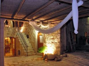 Στον αύλειο χώρο με τις πέτρινες πεζούλες και τον αμφιθεατρικό χώρο για δρώμενα