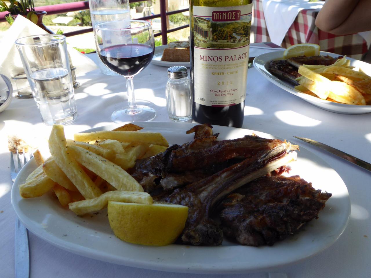 fricassee kid special cooked with glistrida and stamnagathi (potherbs - herbs)