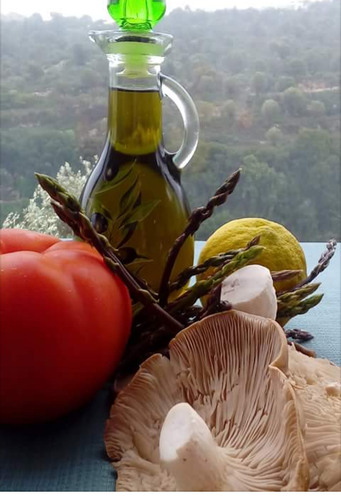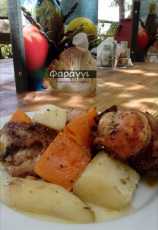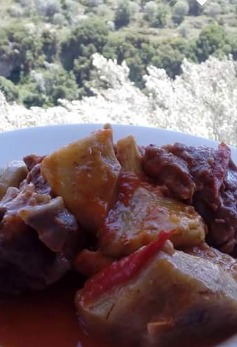 Traditional cretan food. We used fresh biological vegetables from our field and olive oil of our product. Also cheese and meat from Rethymno and local wine, raki, honey and mountain herbs. Some of our dishes: traditional roast lumb on fire, traditional cretan spaghetti, mousaka, stuffed vegetables, beefberger stuffed with feta or graviera, rabbit with onions and fresh tomato (stifado) and more... You can see the beautiful view of the gorge! ! For children playground with trambolin and much more. There is safed parking! Special price! !